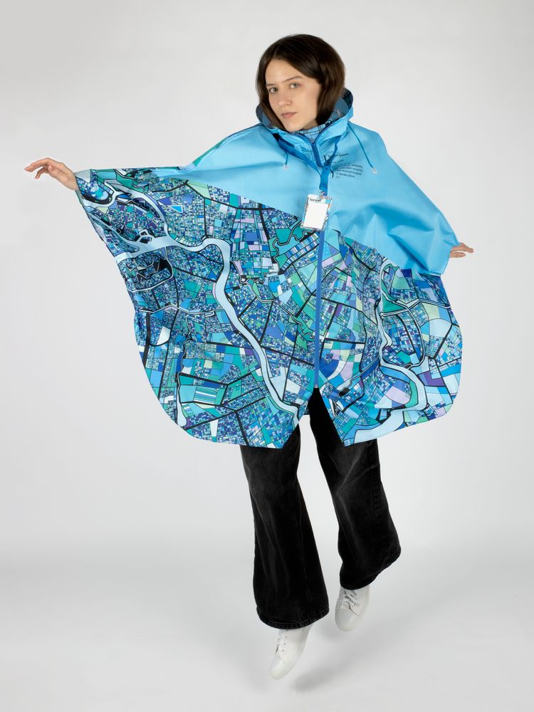 Полноцветная печать методом сублимации с лицевой стороны дождевика и мешка для хранения входит в стоимость изделия.