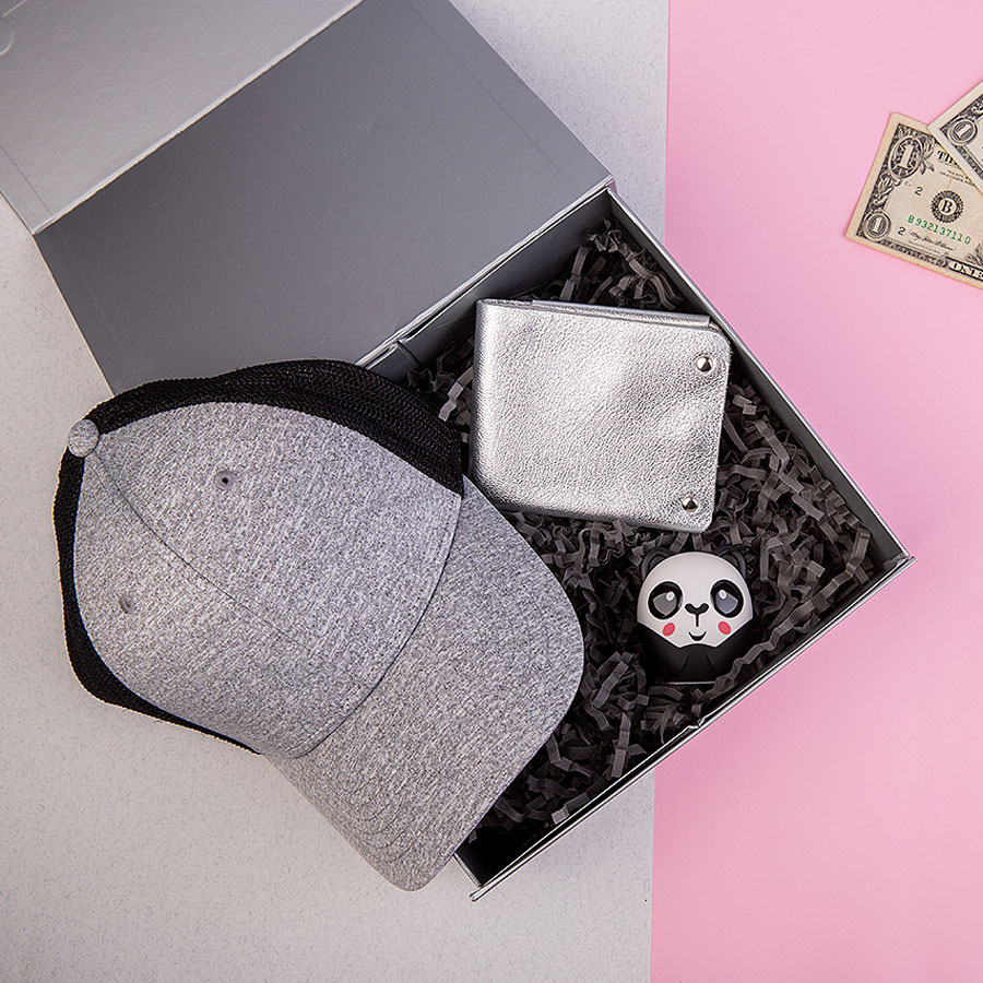Набор подарочный O’GIRLIE: беспроводная колонка (панда), портмоне, бейсболка, коробка с наполнителем