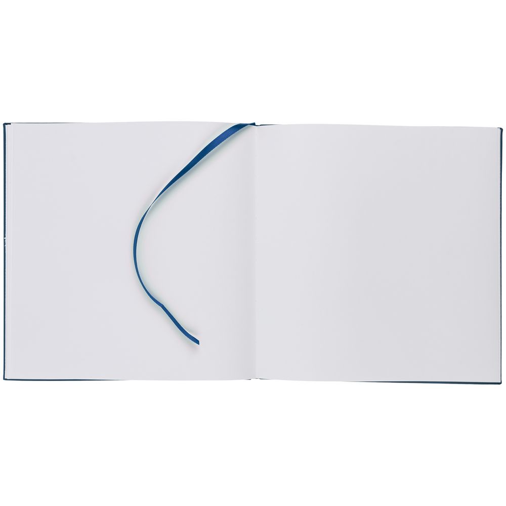 Скетчбук с твердой обложкой выполнен из материала Soft Touch, синий НН, дополнен ляссе в цвет обложки.
