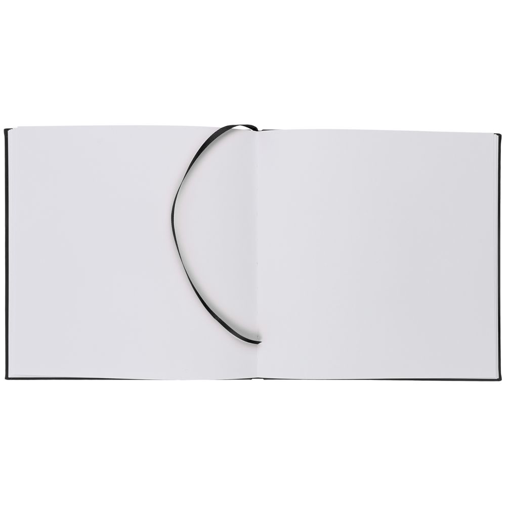 Скетчбук с твердой обложкой выполнен из материала Soft Touch, черный АА, дополнен ляссе в цвет обложки.