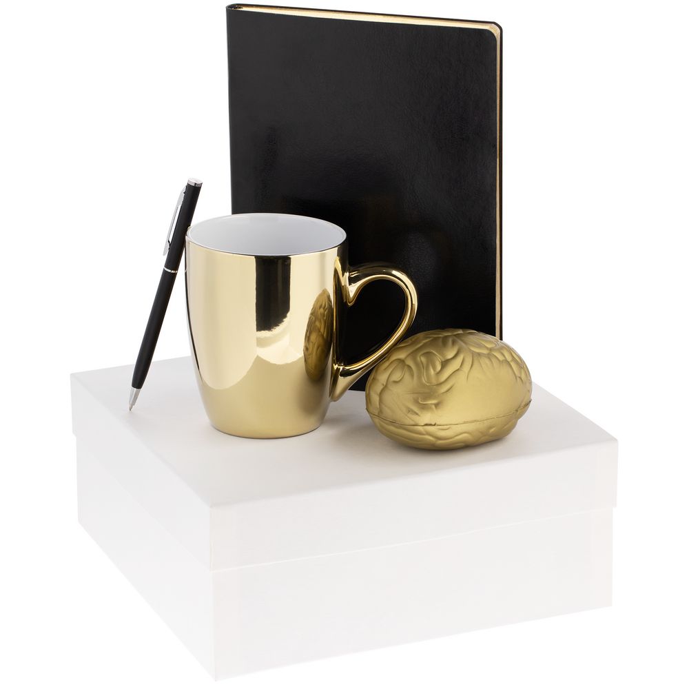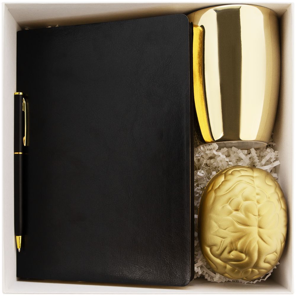 Позолоченный эффект в оформлении всех составляющих набора — выигрышный визуальный акцент-комплимент, подчеркивающий особую ценность получателя подарка.