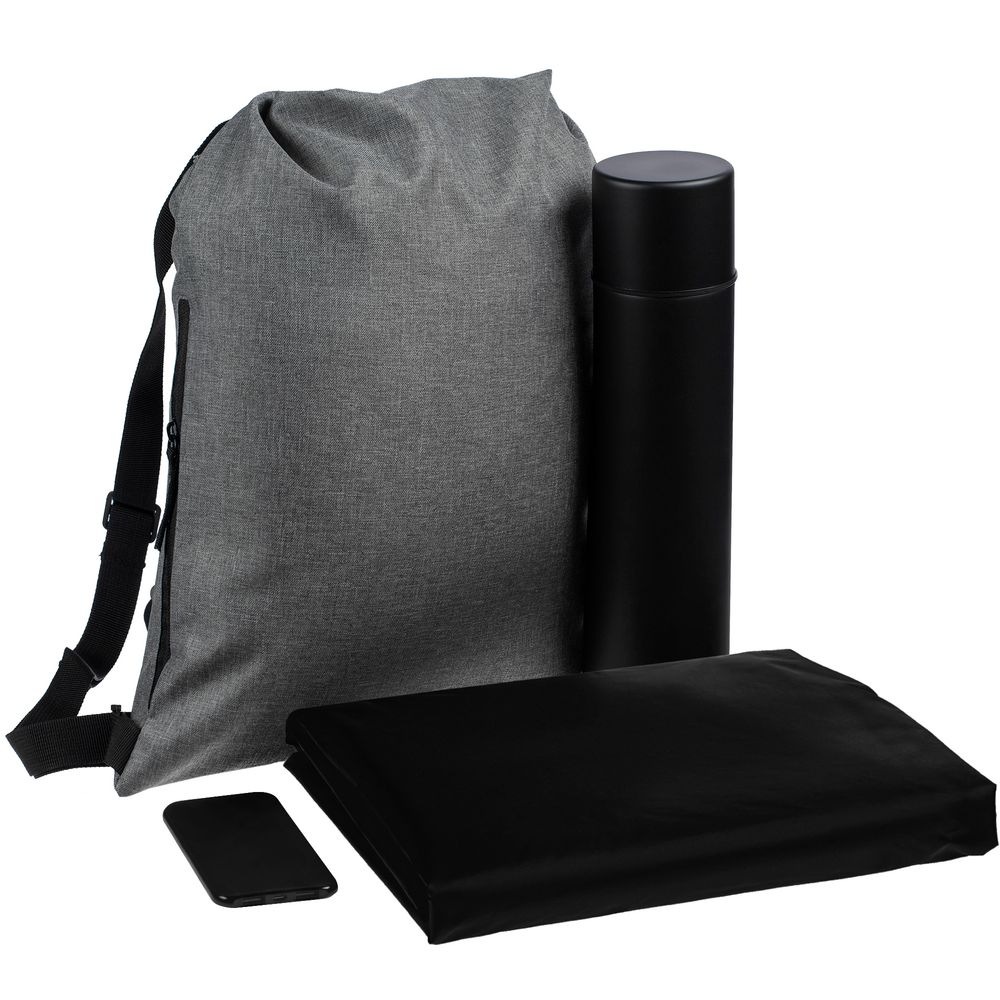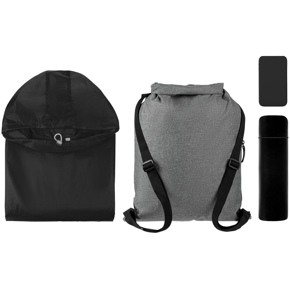 Термос с любимым горячим напитком поможет согреться, с внешним аккумулятором вы всегда будете на связи, а дождевик-анорак из прочной водозащитной ткани таффета легко защитит от любой непогоды.