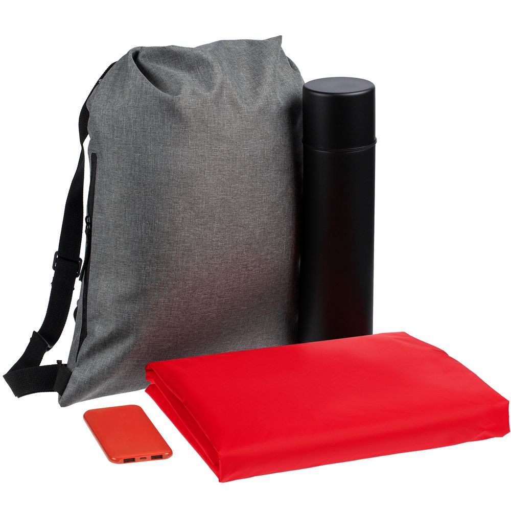 Термос с любимым горячим напитком поможет согреться, с внешним аккумулятором вы всегда будете на связи, а дождевик-анорак из прочной водозащитной ткани таффета легко защитит от любой непогоды.