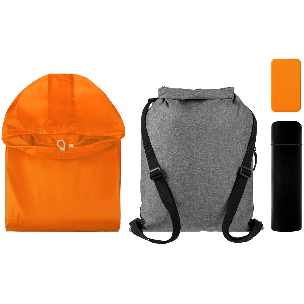 Термос с любимым горячим напитком поможет согреться, с внешним аккумулятором вы всегда будете на связи, а дождевик-анорак из прочной водозащитной ткани таффета легко защитит от любой непогоды.