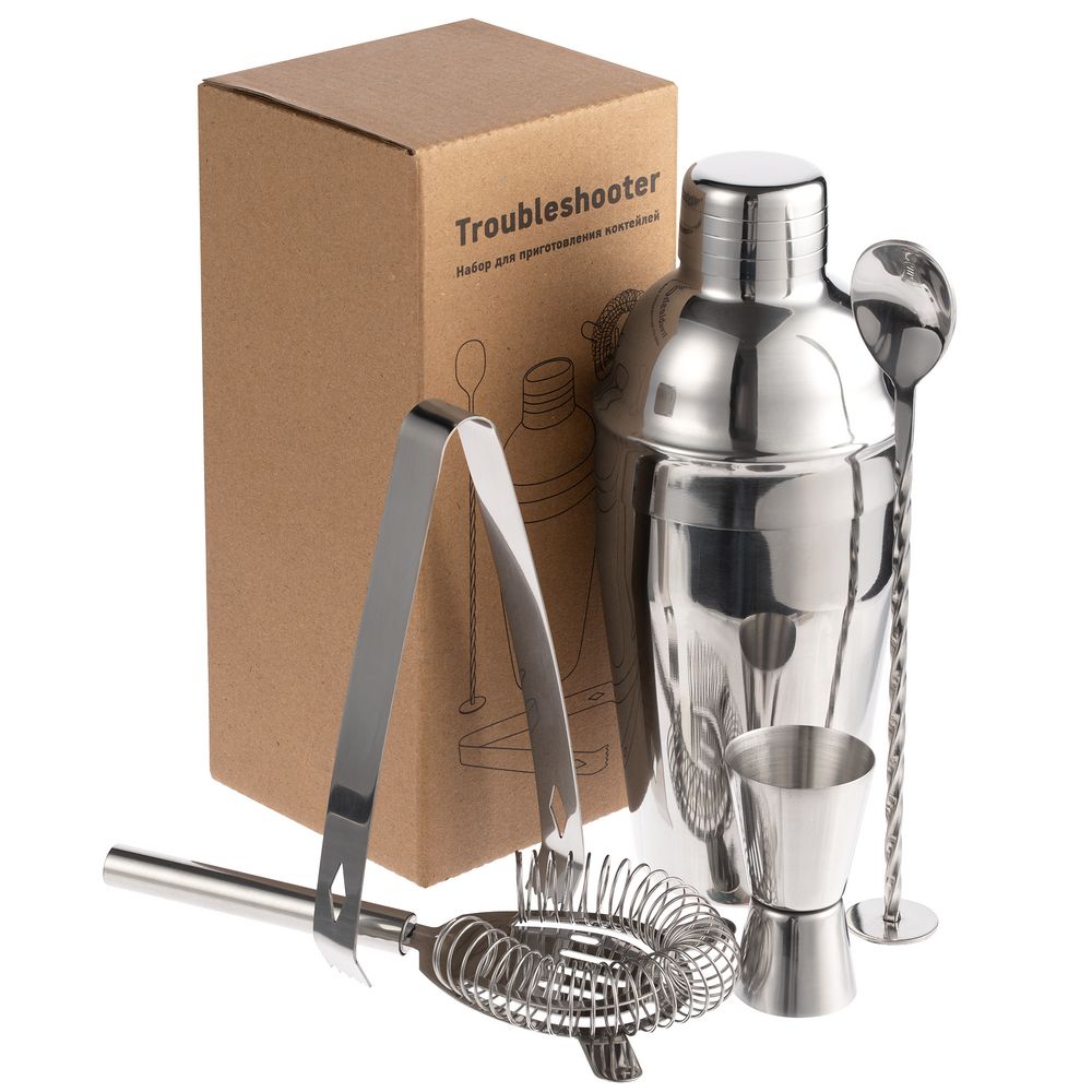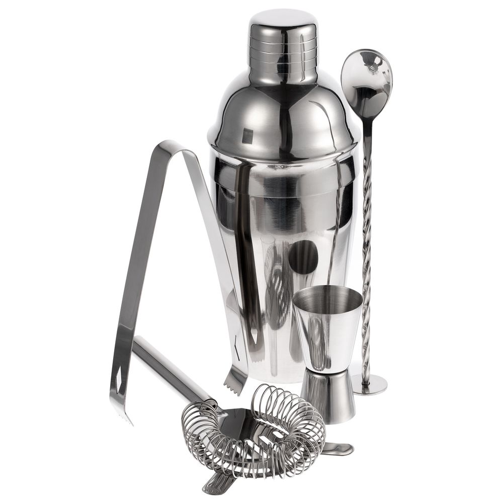 Отмерить нужное количество ингредиентов для напитка поможет мерный стаканчик — джиггер, барной ложкой удобно насыпать специи, а обратной ее стороной — разминать сочные кусочки фруктов. Щипцы пригодятся для добавления в шейкер кусочков льда или сахара, а ситечко-стрейнер поможет отделить коктейль от льда и мякоти фруктов, когда понадобится перелить уже готовый напиток из шейкера в стакан.В наборе: