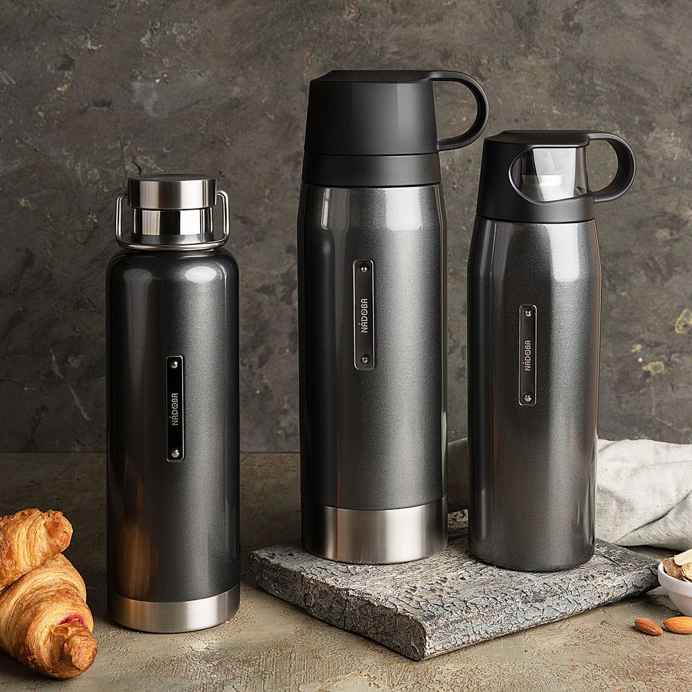- Двойные стенки из нержавеющей стали. Благодаря вакуумной теплоизоляции напитки остаются горячими или холодными в течение 24 часов