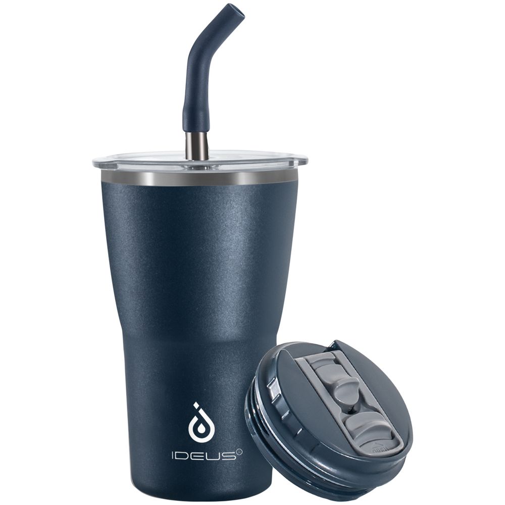 - 2 крышки в комплекте: одна на 100% герметичная с механизмом блокировки отверстия для питья, вторая — с отверстием для трубочки