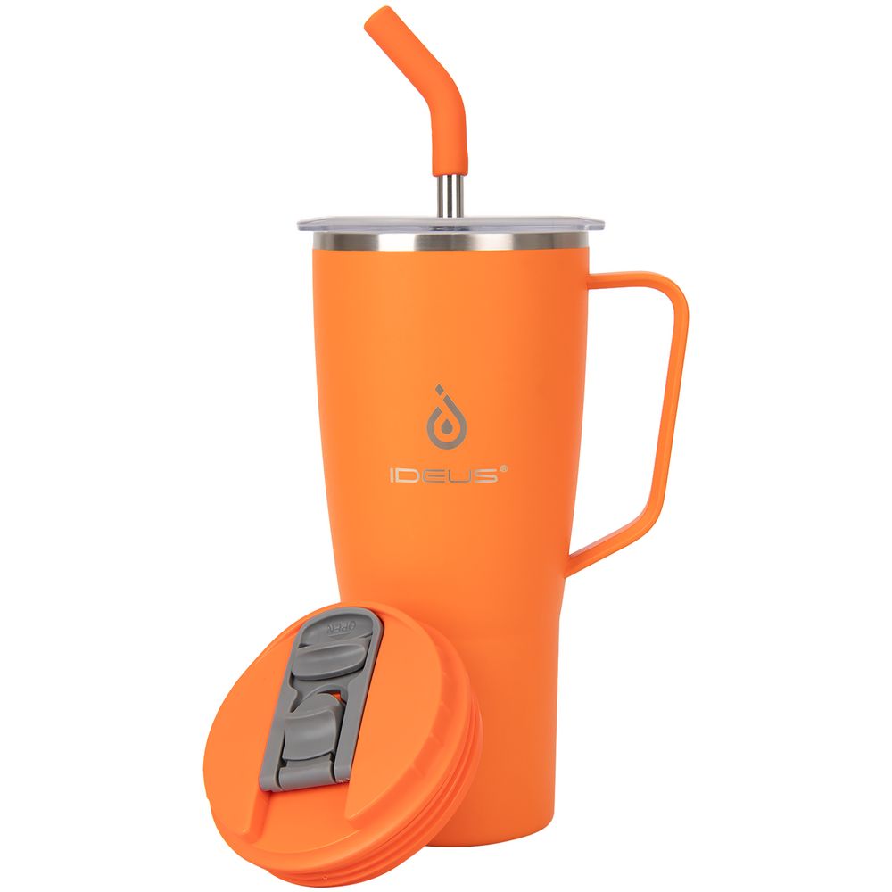- 2 крышки в комплекте: одна на 100% герметичная с механизмом блокировки отверстия для питья, вторая — с отверстием для трубочки