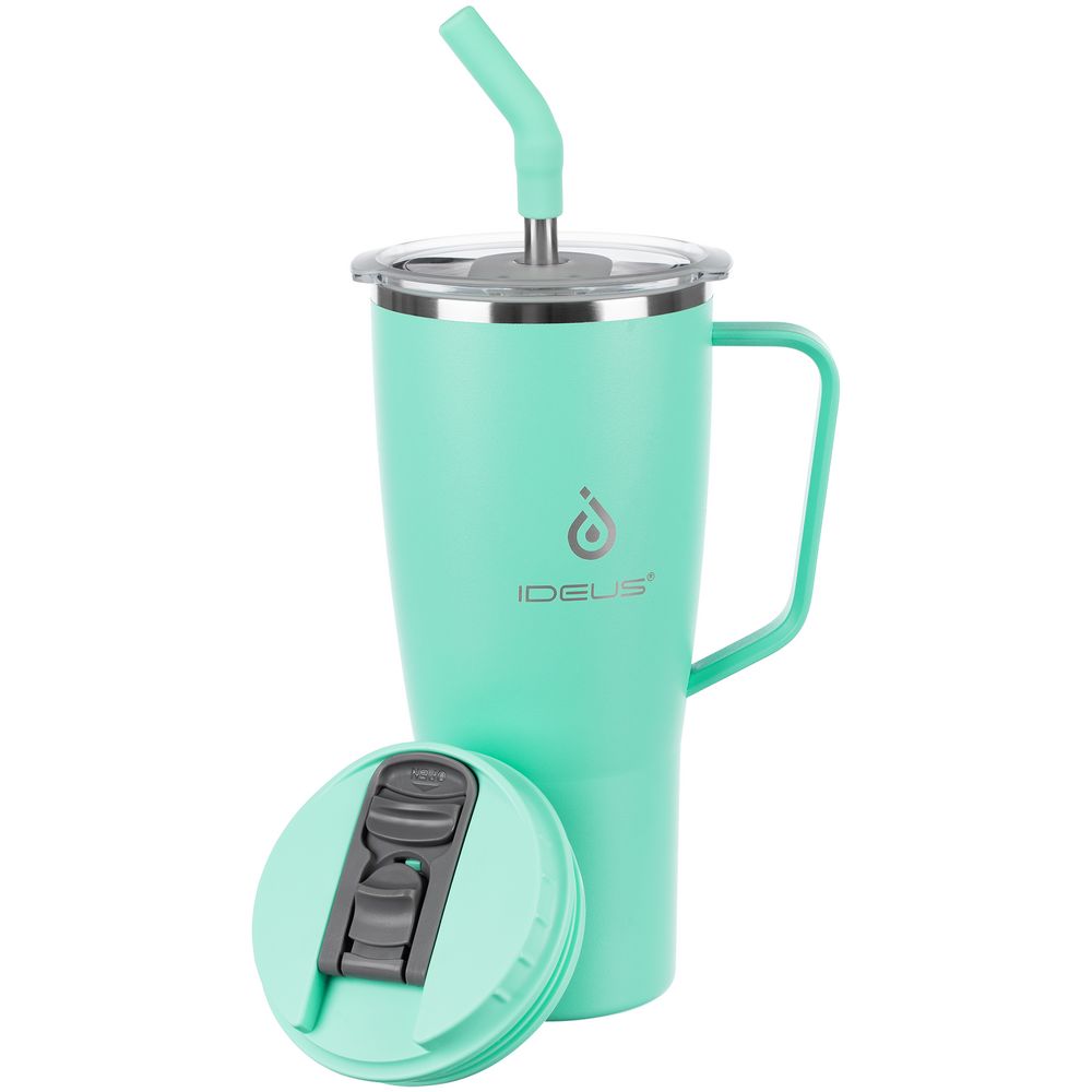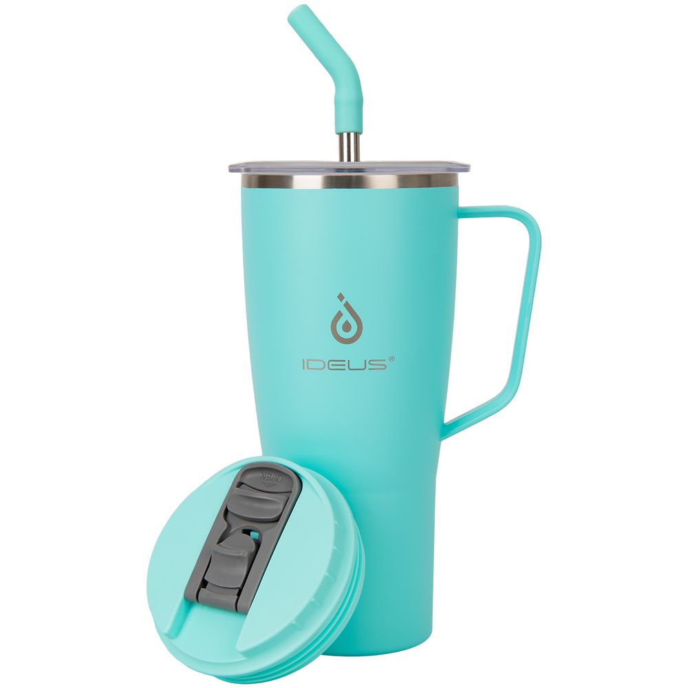 - 2 крышки в комплекте: одна на 100% герметичная с механизмом блокировки отверстия для питья, вторая — с отверстием для трубочки