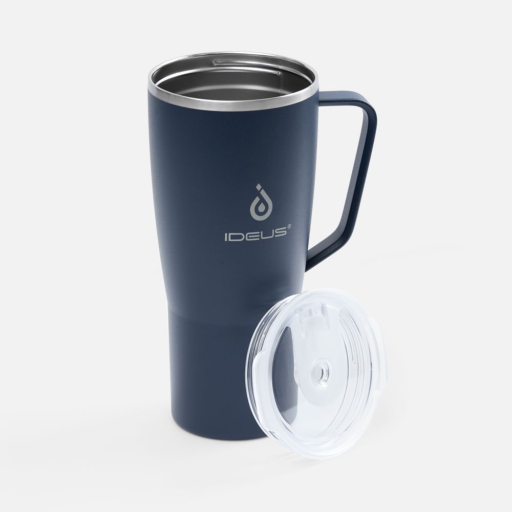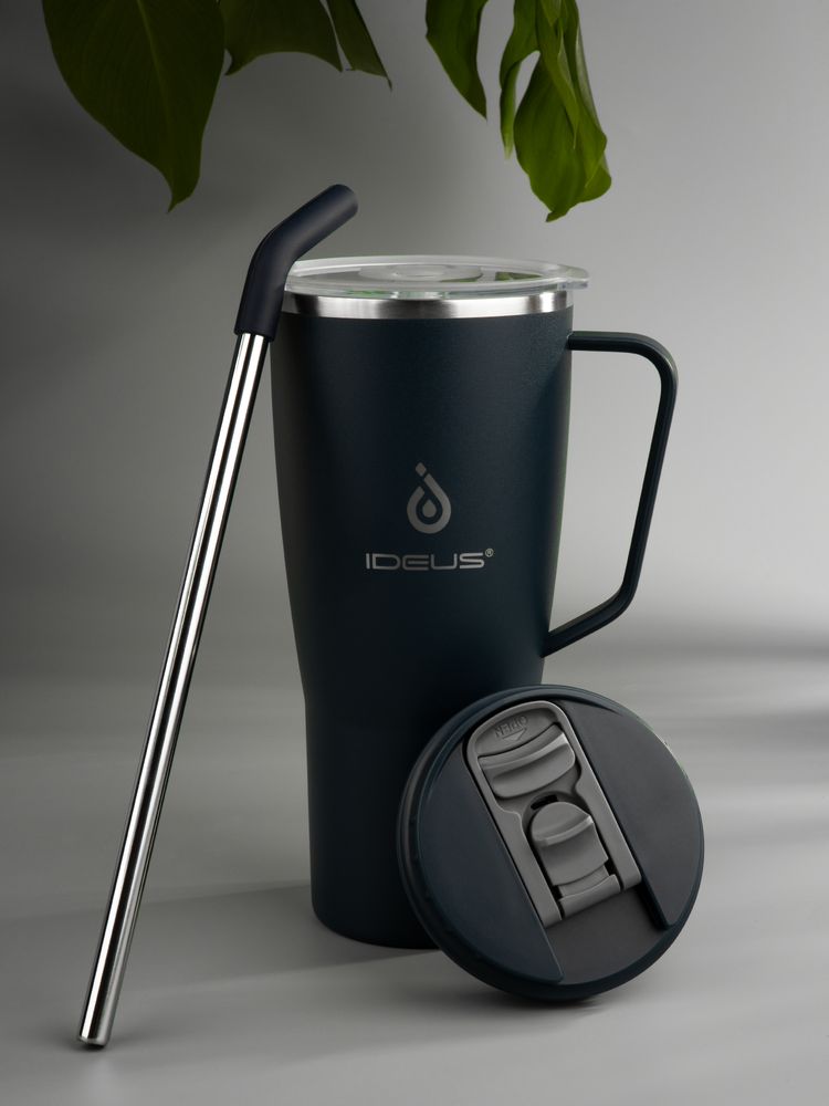 - 2 крышки в комплекте: одна на 100% герметичная с механизмом блокировки отверстия для питья, вторая — с отверстием для трубочки