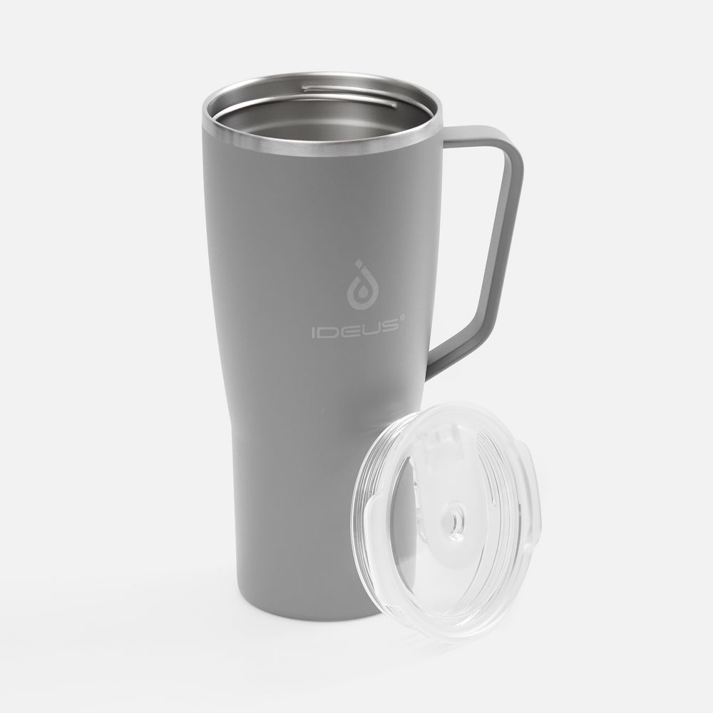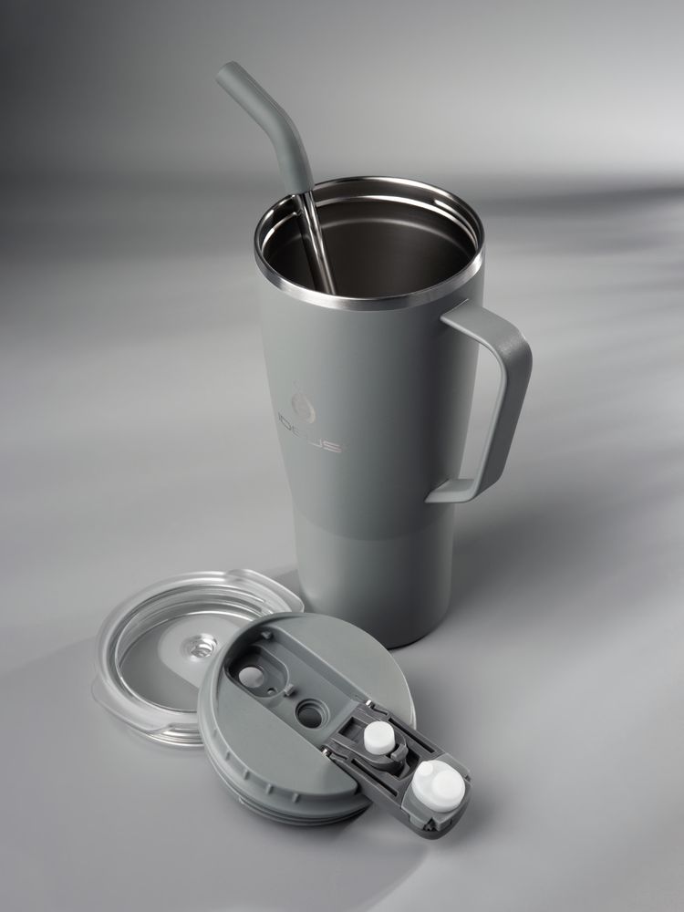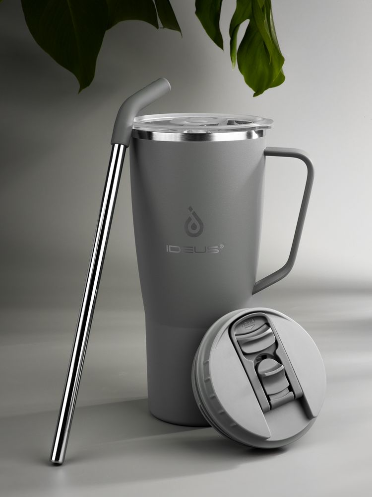 - 2 крышки в комплекте: одна на 100% герметичная с механизмом блокировки отверстия для питья, вторая — с отверстием для трубочки