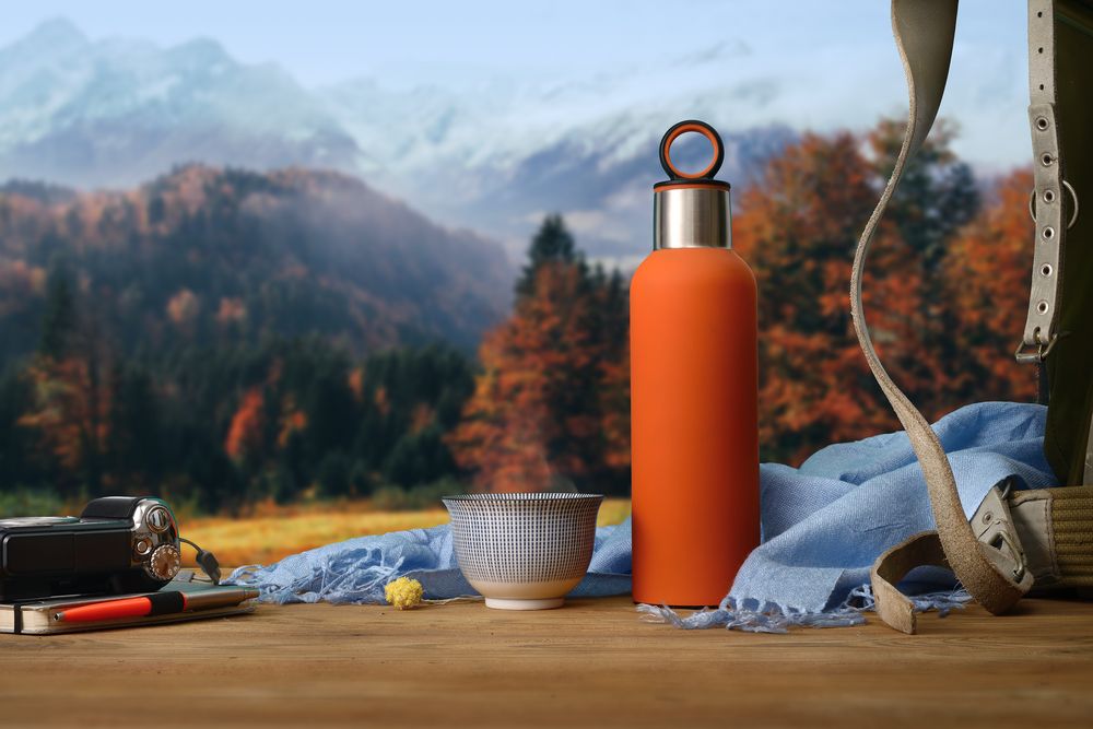 Двухслойная вакуумная конструкция из нержавеющей стали с завинчивающейся пробкой.