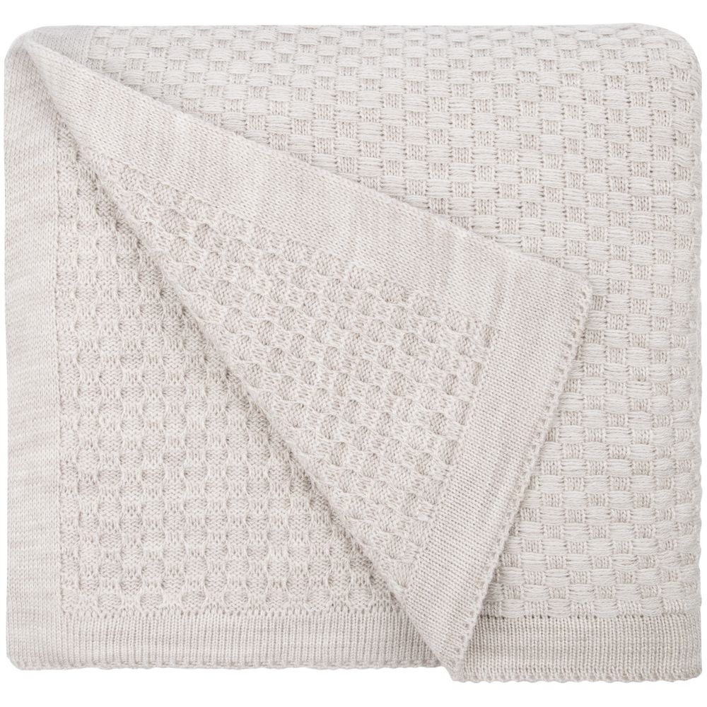 Однотонный плед рельефной вязки.