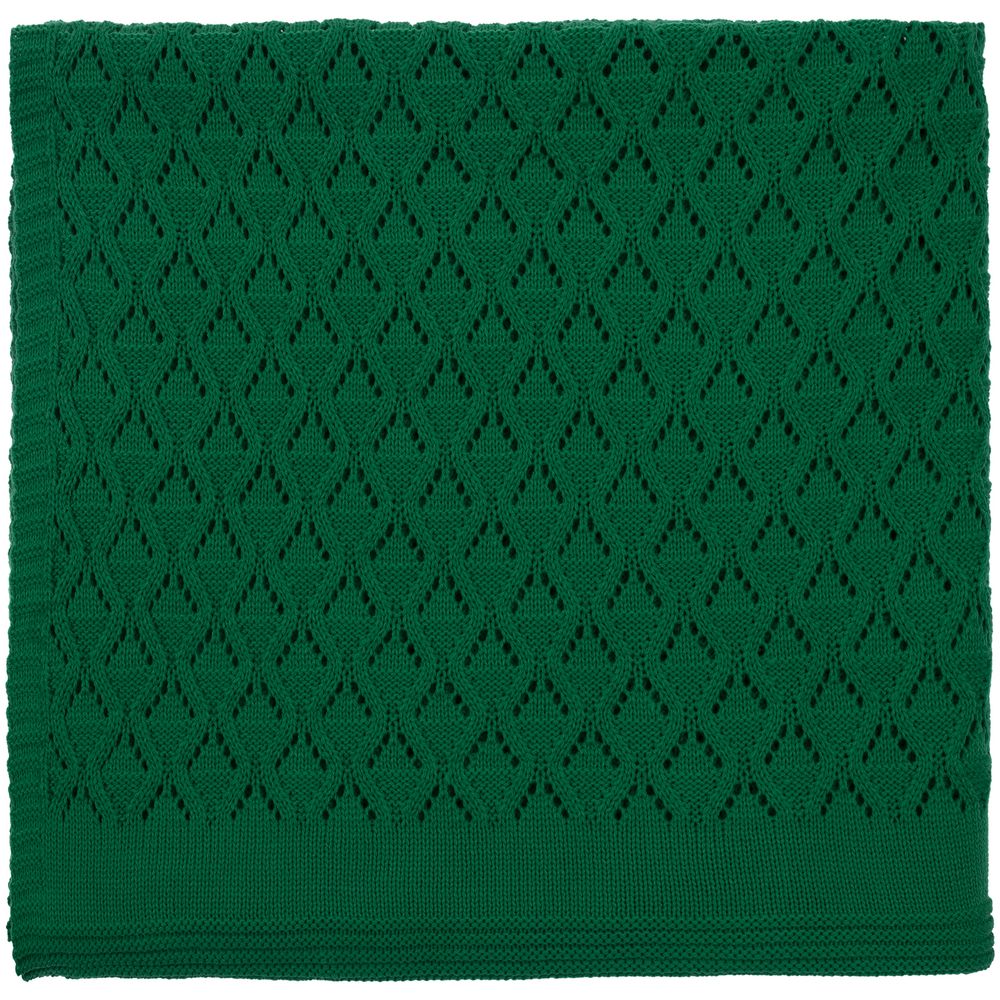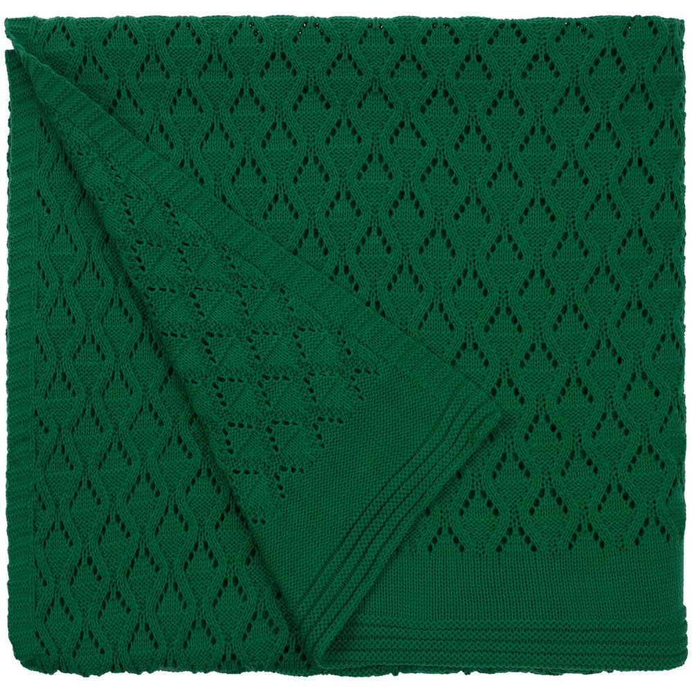 Модель: однотонный плед с фактурной вязкой, которая позволяет сделать его воздушным и объемным. Чередуя различные типы петель на гладком полотне, можно вывязать любую графику — логотип, текст, товарный знак.