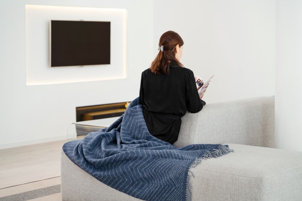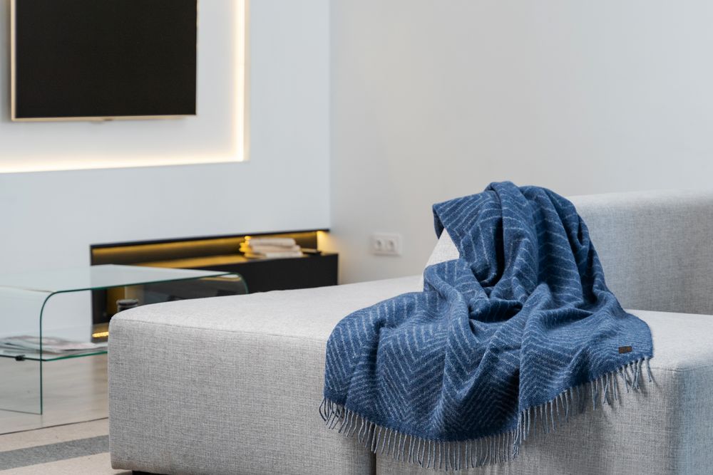 Тканый жаккардовый плед из шерсти альпака (55%) и мериноса (45%). Он легкий и невероятно теплый благодаря тому, что тонкие волокна шерсти задерживают больше воздуха внутри пледа.