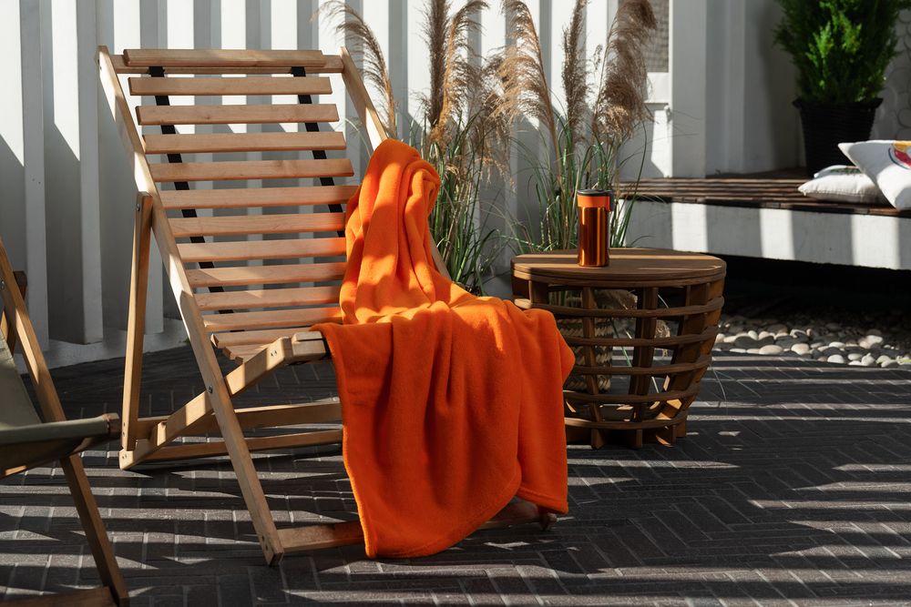Плед Plush пригодится также летними вечерами на открытых кафе и верандах.