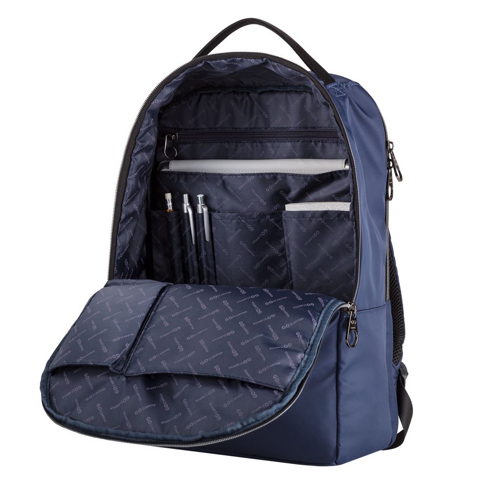 - Два основных отделения на молнии делают этот рюкзак функциональным; в одном из них есть большой карман для ноутбука или планшета, а в другом есть несколько карманов для гаджетов, письменных принадлежностей и других мелочей