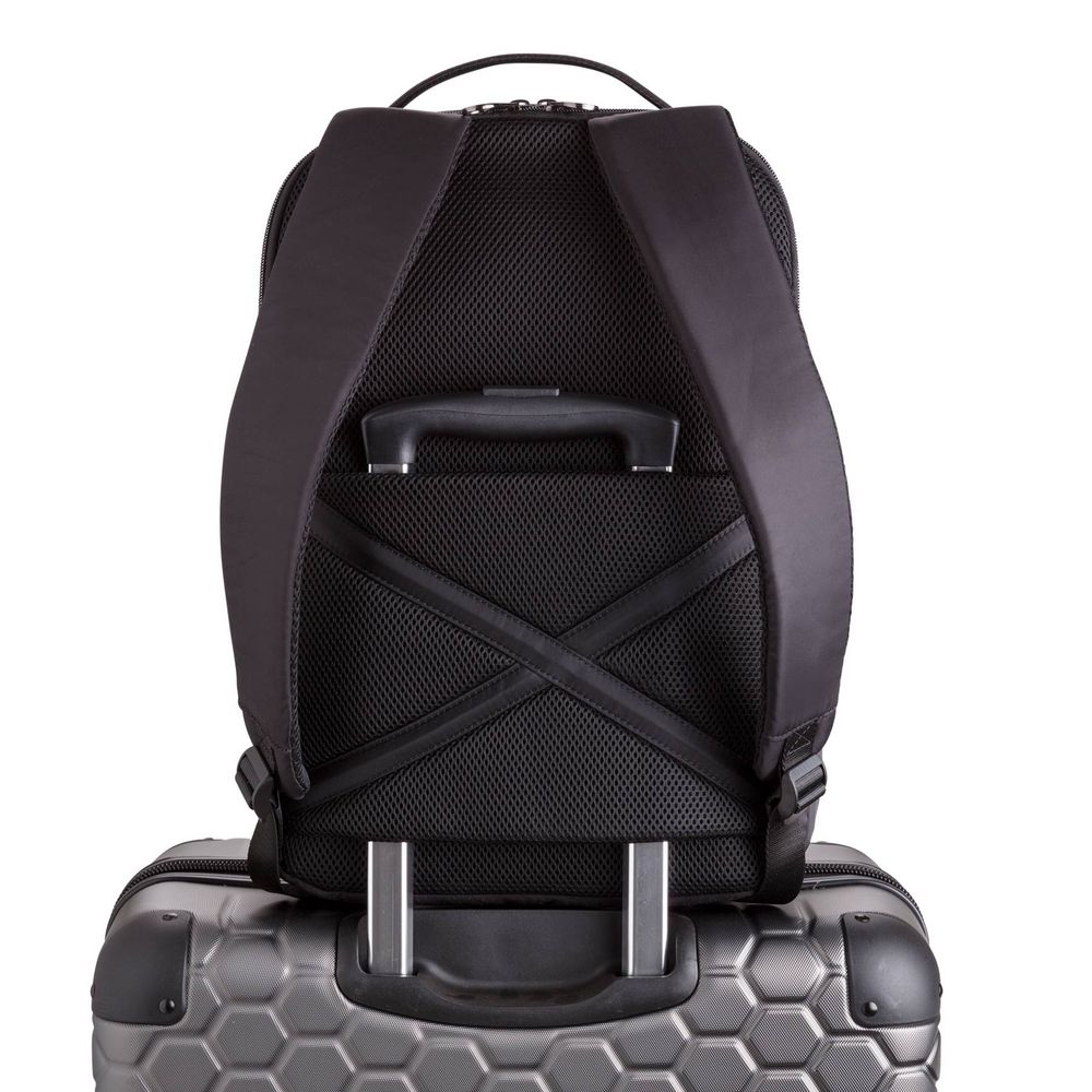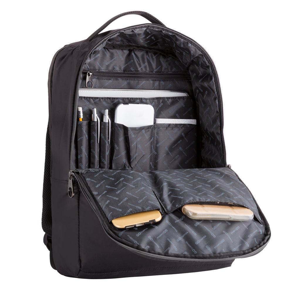 - Два основных отделения на молнии делают этот рюкзак функциональным; в одном из них есть большой карман для ноутбука или планшета, а в другом есть несколько карманов для гаджетов, письменных принадлежностей и других мелочей