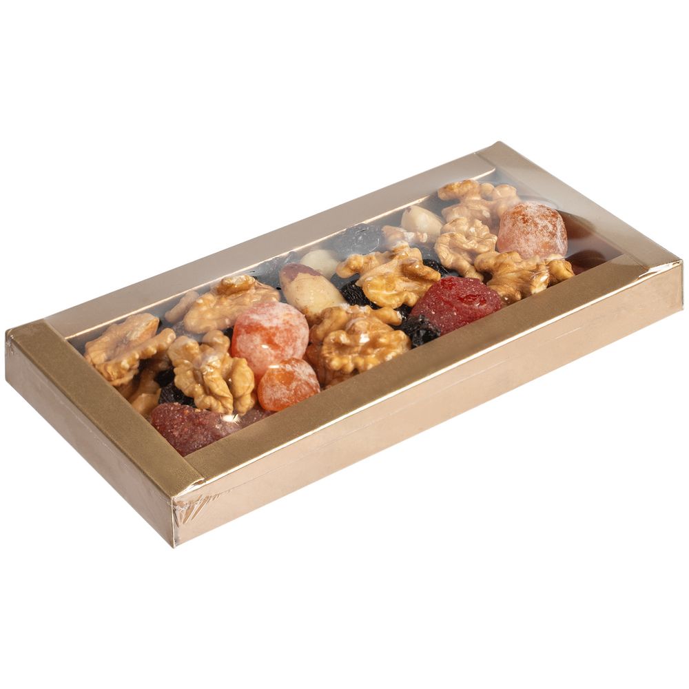 Состав: ядро бразильского ореха, кумкват сушеный, клубника сушеная, орех грецкий, изюм темный.