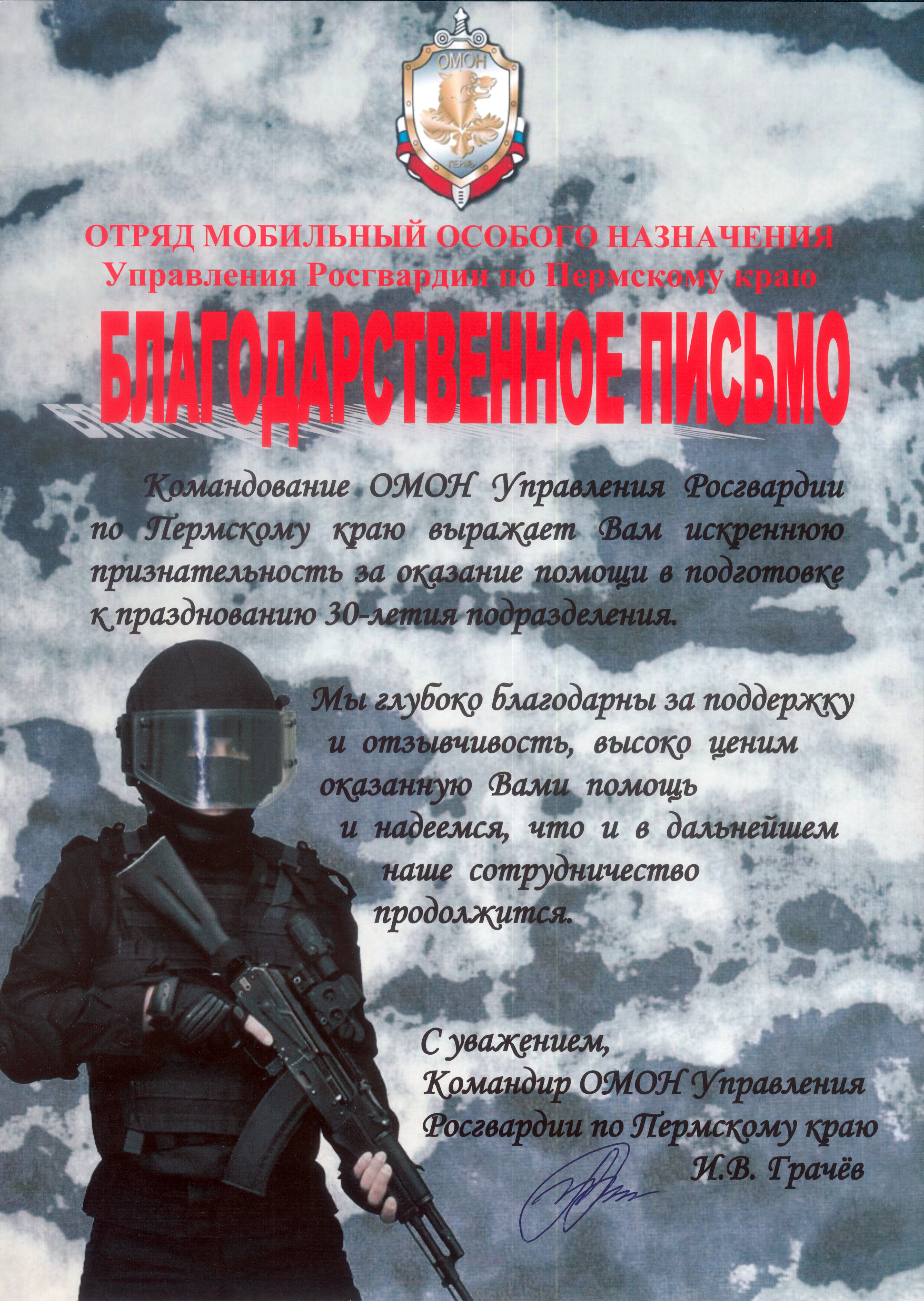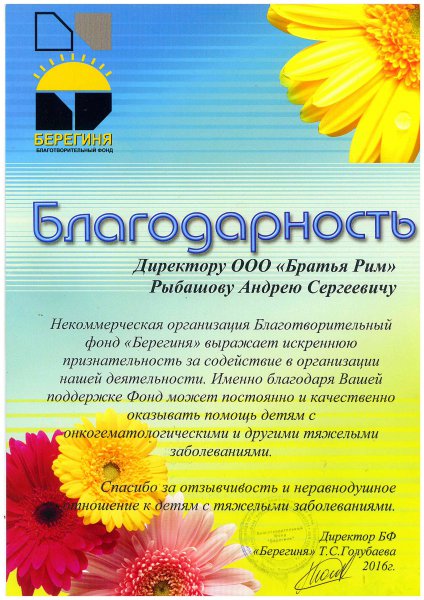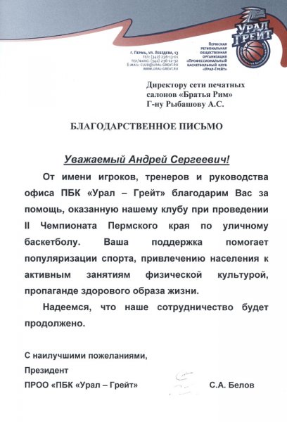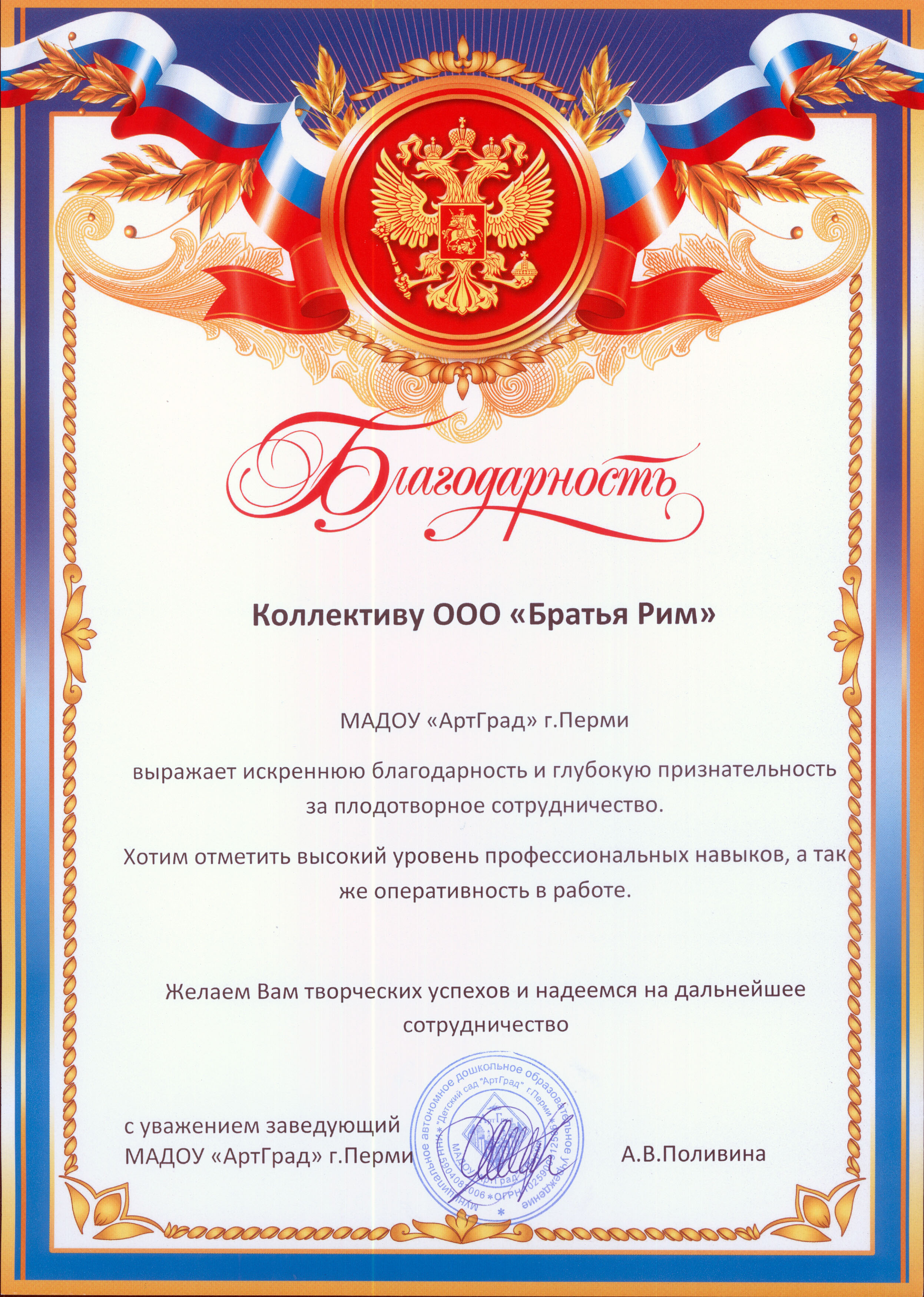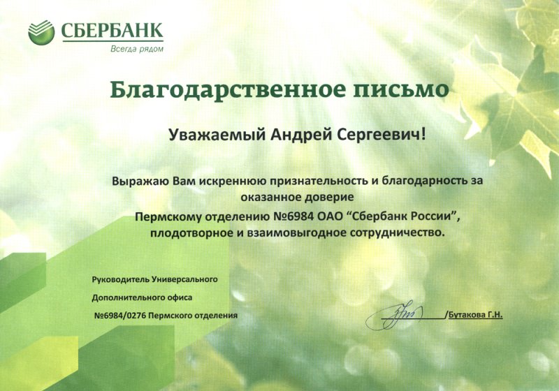 Благодарственные письма